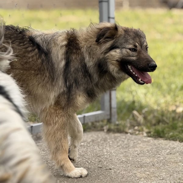 Mia ist ein Mädchen, sie ist laut Tierarztschätzung ca. 1,5 Jahre alt (geb. 10.11.2024), wiegt 22,2kg und ist 53cm groß. Vermutet wird ein Collie – Karst Schäferhund Mischling. Ihr Fell ist einmalig und aussergewöhnlich schön.
