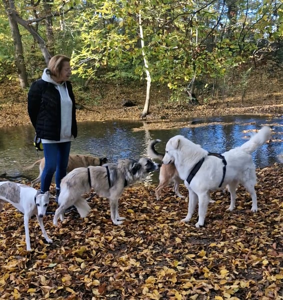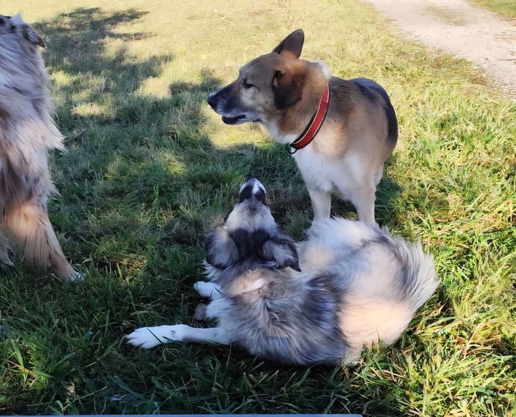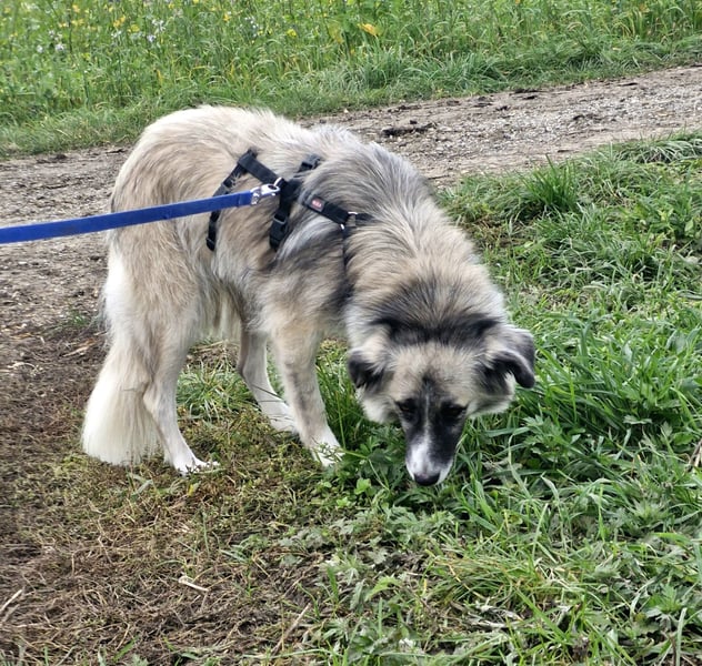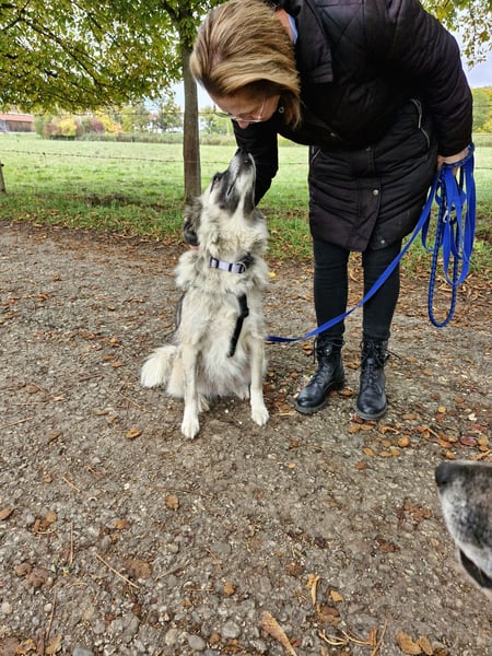 Bei Spaziergängen durch Wald, Wiesen und Feldern ist Emmi auch an der Leine bei Hundebegegnungen entspannt und freundlich. Emmi darf aber auch bereits freilaufen, da sie sehr auf ihre Menschen fixiert ist und bereits auf das Rückrufkommando hört.