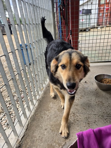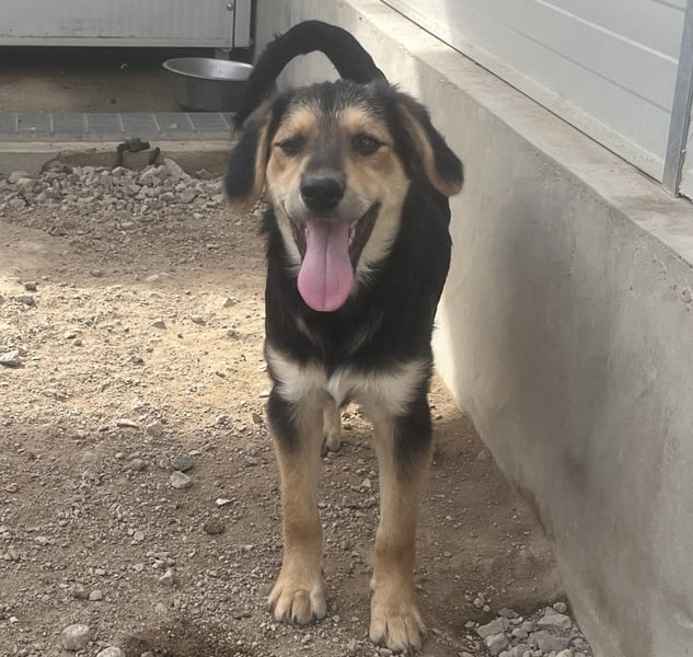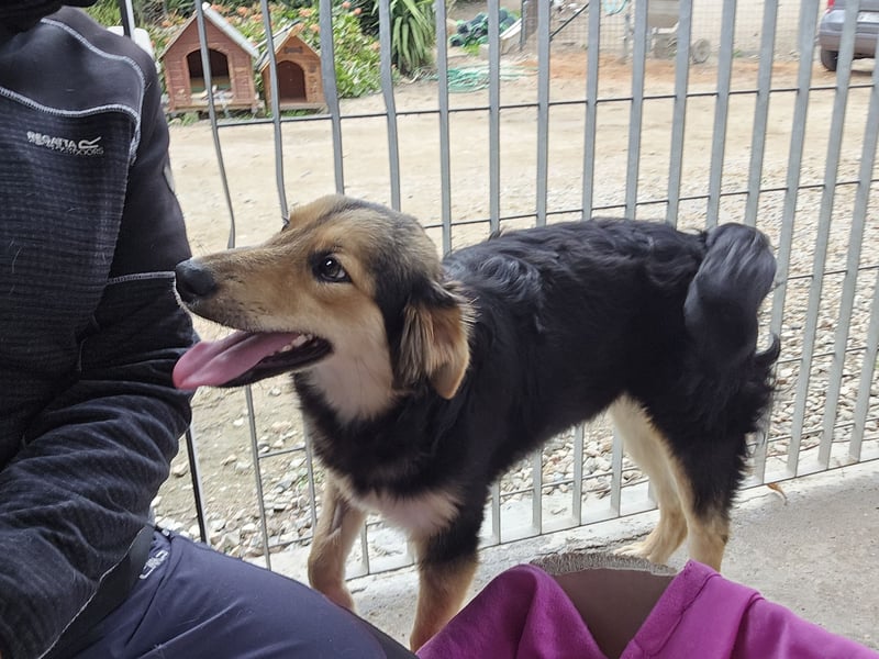 Bijou ist ein Mischling - wahrscheinlich Collie-Segugio Mischling. Wir schätzen, dass sie ca 50 cm groß wird