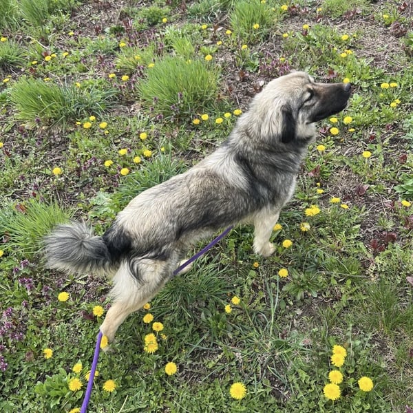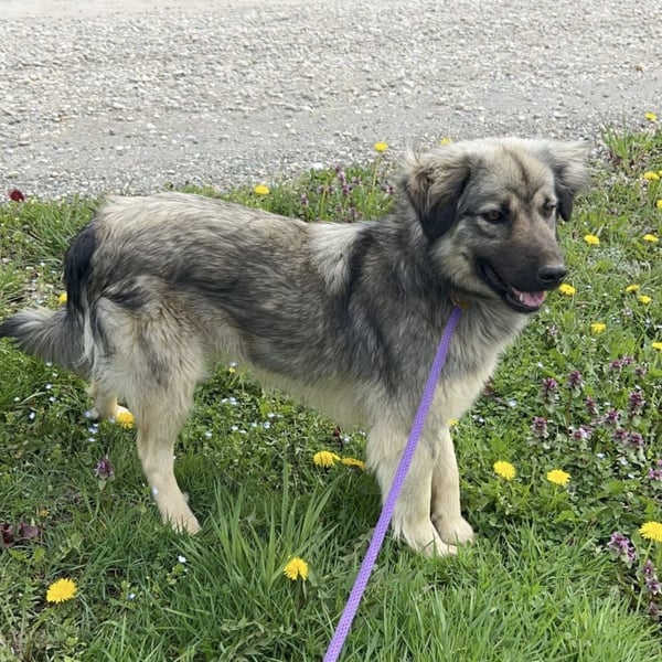 Ryker ist ein Junge, er ist laut Tierarztschätzung ca. 2 Jahre alt (geb. 27.06.2024), ist 55 cm groß und wiegt 17,5 kg. Optisch wird ein kleinerer Šarplaninac-Mischling vermutet, doch mit viel Collie-Anteil. In Tierheim zeigt er gar kein HSH Verhalten.