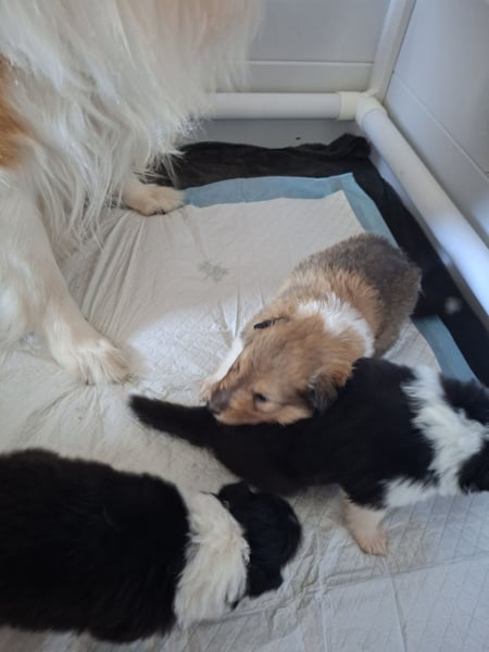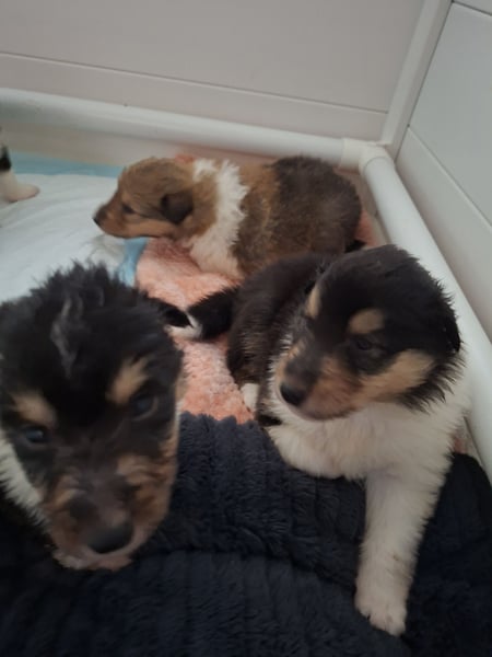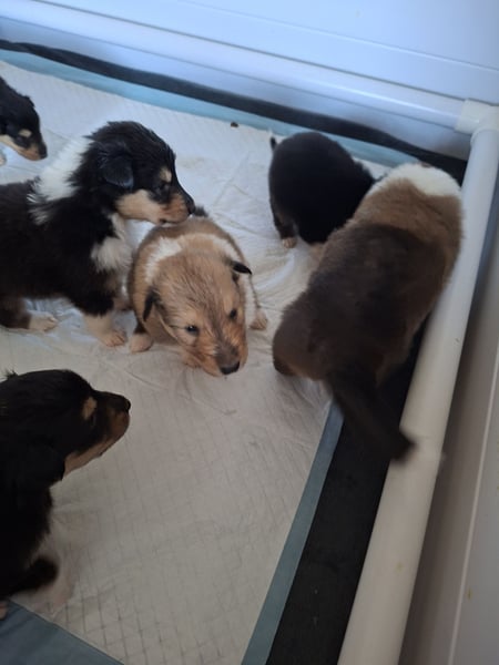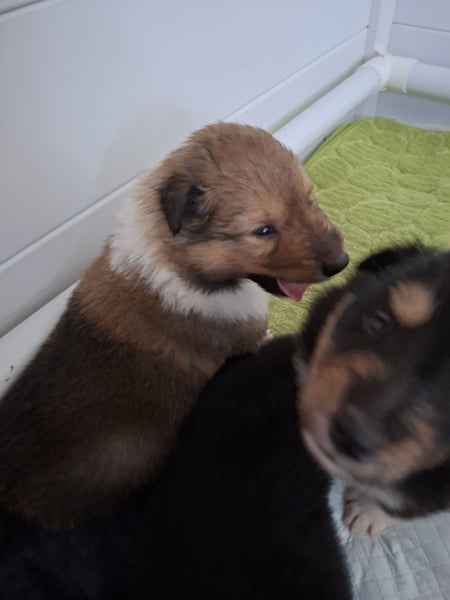 Wunderschöne Colliewelpen, 2 Rüden din darksable, 2 Rüden in tricolor und 1 Hündin in tricolor sind noch zu vergeben. Die Kleinen sind bis ca. Mitte April abzugeben. Natürlich sind sie tierärztl. untersucht, geimpft, entwurmt, EU Impfpass, Ahnentafel, Starterpaket. Die Eltern sind genetisch auf Erbkrankheiten untersucht, HD und ED frei. Die kleinen sind verspielt und verschmust, kennen Katzen, andere Hunde, alltägliche Haushaltsgeräusche und sind gut sozialisiert. Sie sind geeignet für Kinder, ältere Leute, als Therapiehund und für Anfänger. Gerne können sie einen Besichtigungstermin vereinbaren.