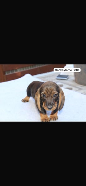 Diese 6 jungen Dackelwelpen suchen ab Mai ein neues zuhause. Es handelt sich hierbei um den B Wurf welcher aus 5 Damen und einem Rüden besteht. Alle Welpen sind geimpft, gechipt und entwurmt. Sie entstammen der Hobby Zucht und sich alle Saufarbig veranlagt. Mutter und Vater der Welpen sind vorhanden und leben im gemeinsamen haushalt.