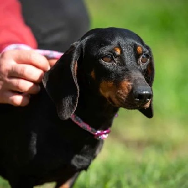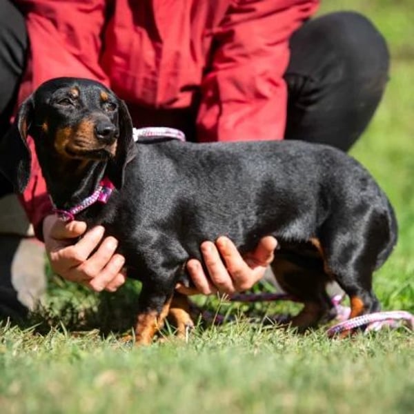 Inzwischen wartet Cambria in unserem Partnertierheim Allatbarat in Ungarn auf ihre Menschen. Sie ist ein typischer Dackel durch und durch: lustig, fröhlich, clever und mit ganz viel Charakter. Cambria begegnet dem Leben mit Offenheit und guter Laune. Sie hat keine Berührungsängste, geht neugierig auf Menschen zu und genießt jede Aufmerksamkeit. Dabei bringt sie genau die richtige Mischung aus Selbstbewusstsein und Charme mit, wie man sie nur bei Dackeln findet. Natürlich muss Cambria noch einiges lernen – das Hunde-ABC, Alltagsroutinen und wie das Zusammenleben in einer Familie funktioniert. Cambria möchte dackeltypisch beschäftigt werden. Mit anderen Hunden zeigt sie sich verträglich und läuft im Tierheim problemlos in einer gemischten Gruppe.