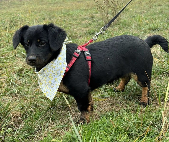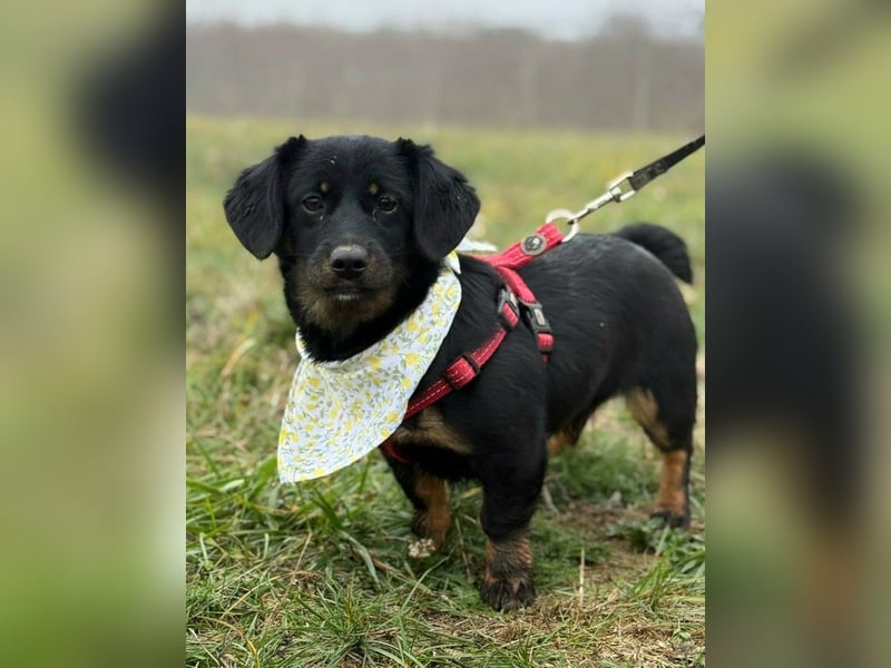 Skadi, meeegaaasüßes Dackelmixmädchen (geb.13.06.2025, aktuell 29cm, 6kg, Stand Ende Dezember 2025), im Babyalter ausgesetzt und lebt jetzt im Babyland des Tierheims an der kroatisch ungarischen Grenze. Skadi liebt die Gesellschaft von Menschen und Hunden und ist bereit sich auf alles Neue einzulassen. Natürlich muss sie das Hundeeinmaleins noch lernen, was ihr aber in einer liebevollen Fürimmerfamilie leicht gelingen wird. Ihre Schwester hat den Sprung nach Deutschland bereits geschafft und ist geliebtes Familienmitglied.
