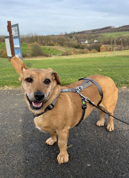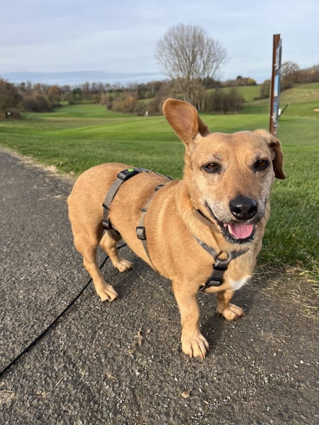 Ginger zeigt draußen gelegentlich Interesse am Jagen und man muss schauen, ob sie in Zukunft ohne Leine laufen kann, da kommt der Dackel dann doch durch…
