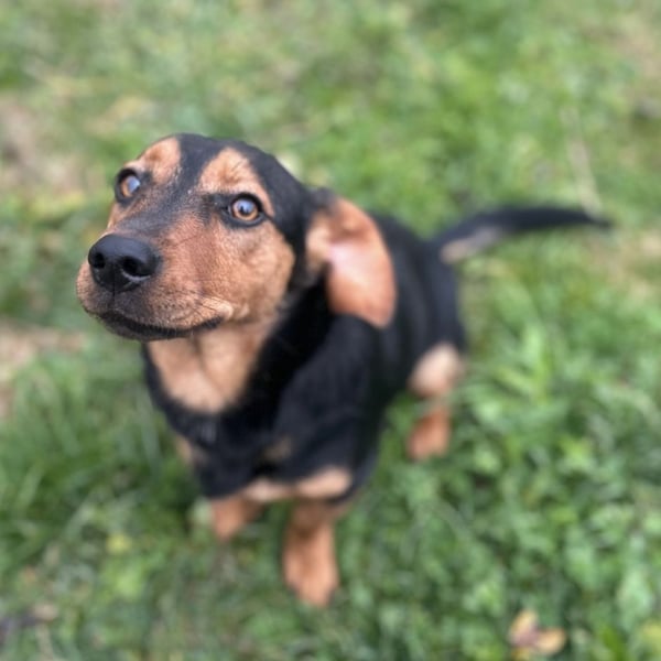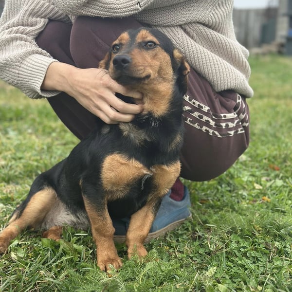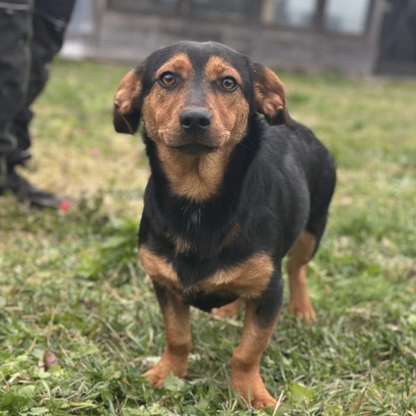 Tilly ist ein Mädchen, sie ist laut Tierarztschätzung ca. 1 Jahr alt (geb. 01.09.2024). Sie ist etwa 35 cm groß, wiegt ungefähr 9 kg und ist bereits ausgewachsen. Vermutet wird ein Dackel-Mischling.