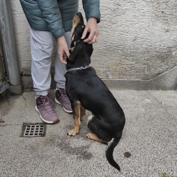 Über seine Vergangenheit weiß man nichts, da er ausgesetzt wurde und mehrere Wochen allein in einem kroatischen Dorf umherirrte. Manchmal bekam er etwas Futter, oft wurde er ignoriert oder weggeschickt. Schließlich hielt er sich immer häufiger an einer Schule auf, wo ihn die Kinder ins Herz schlossen und er sich riesig über die Aufmerksamkeit freute. Gerettet wurde er durch den Einsatz einer Lehrerin, die ihn versorgte und lokale Volontärinnen um Hilfe bat.
