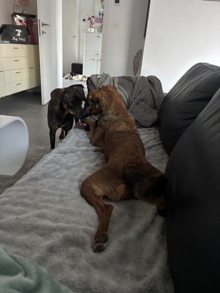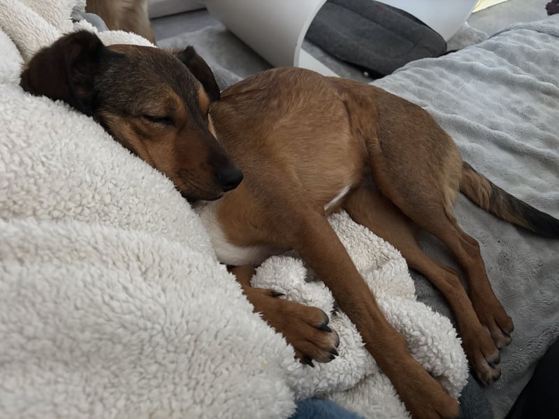Sie kennt das Leben im Haus bereits und ist daran komplett gewöhnt. Auch an der Leine läuft sie wunderbar. Sie schläft gerne eingekuschelt im Bett.