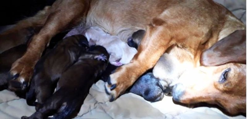Dank beherzter Helfer durfte sie nach Deutschland reisen und in ihrer Pflegefamilie endlich ankommen. Und hier, am 2. August 2025, geschah das Wunder: Sie schenkte sieben kleinen Welpen das Leben – sicher, warm und geborgen. Sieben Wunder, die sie trotz ihrer eigenen Verletzung mit unglaublicher Hingabe aufzog.