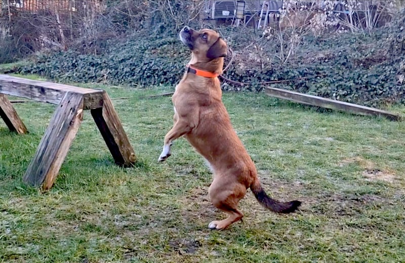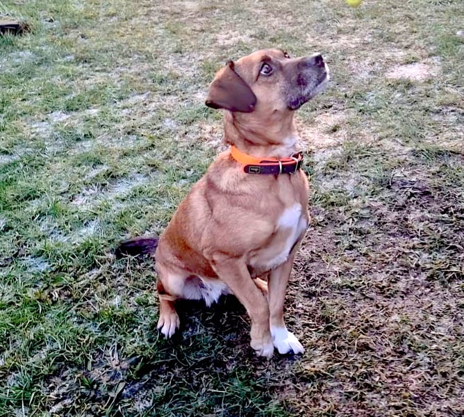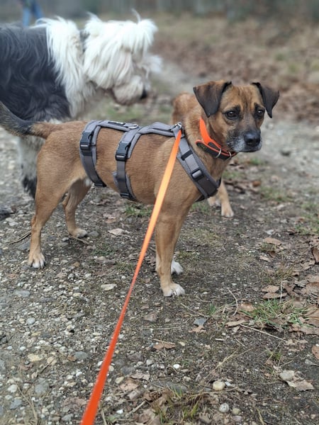 RAYA läuft prima an der Leine, begleitet euch am Fahrrad, lässt sie sich gut mit liebevoller Ansprache und Ablenkung unterstützen sollte sie einmal unsicher sein.