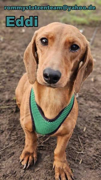 Eddi, Rüde, Dackel Mischling, geboren ca. 01. Mai 2023 (von einem ungarischen Tierarzt geschätzt), reist kastriert, Schulterhöhe: ca. 29 cm und ca. z.Z. 5-6 Kilo (Hals: 25-29 cm, Brust: 43-47 cm), Vermittlung zu Katzen: ja, wenn diese das Leben mit Hunden kennen. Auf Wunsch wird auch extra nochmals getestet, nur eine Garantie gibt es nicht.