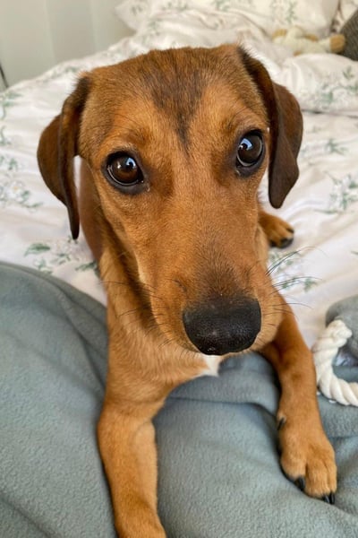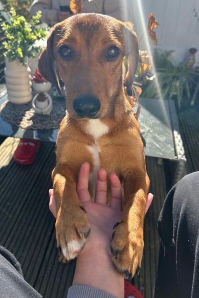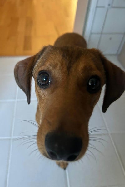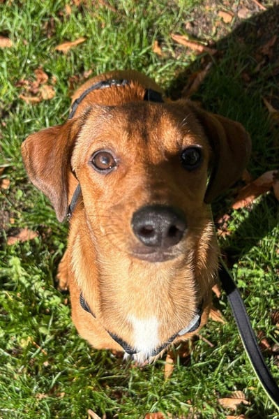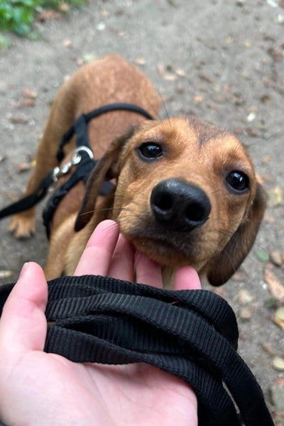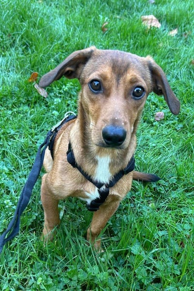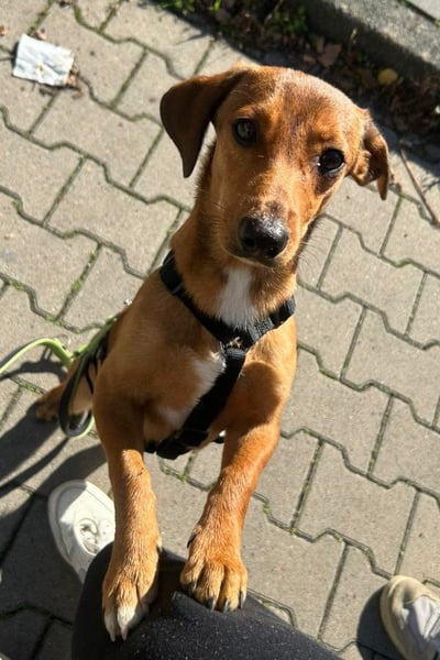 Vor Kurzem durfte der kleine Dackel-Mix Luca auf eine Pflegestelle nach Deutschland reisen, wo er bereits immer mehr im Alltag ankommt. Luca ist ein absoluter Schatz, der nicht genug vom Spielen und Durch-die-Wohnung-Toben kriegen kann. Aber auch Kraulis und die Zuneigung seiner Bezugspersonen genießt er sehr und kommt in ihrer Nähe bereits wunderbar zur Ruhe. Auch fremde Menschen und andere Hunde, die er noch nie zuvor gesehen hat, begrüßt der kleine Sonnenschein mit fröhlichem Schwanzwedeln. Er liebt es, neue Dinge zu entdecken und gewöhnt sich draußen aktuell Schritt für Schritt an unsere laute, schnelle Welt, was ihm zwischendurch manchmal noch etwas suspekt ist. Durch Lucas Dackel-Gene zeigt er draußen einen rassebedingten Jagdtrieb, aus dem er sich aber gut abrufen lässt. Auch in der Wohnung blüht Luca auf, flitzt und tobt und ist sehr fröhlich. Alterstypisch hat er selbstverständlich noch allerlei Flausen im Kopf, versteht ein „Nein“ aber ohne Diskussion. Bei seiner Pflegestelle wird er bereits an alltägliche Dinge wie das Treppensteigen, das Laufen an der Leine und ans Autofahren gewöhnt, was immer besser funktioniert. Er ist stubenrein und beherrscht durch seine lernwillige Art schon erste Grundkommandos und möchte einfach nur gefallen. Luca ist ein kleiner Rohdiamant, der sich darauf freut, bald seine Menschen kennenzulernen und sein Für-Immer-Zuhause zu finden. Über einen kleinen, ausbruchsicheren Garten und einen Fellkumpel würde sich der verträgliche Rüde sicherlich sehr freuen – Voraussetzung ist dies natürlich nicht.