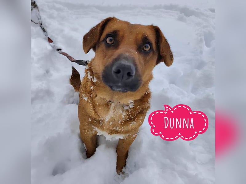 Kleine Kinder hat sie bereits kennengelernt, die findet sie ganz besonders toll. Wenn gelacht, gespielt oder ein Ball geworfen wird, ist Dunna sofort dabei mit ihren besonders hübschen, leuchtenden Augen und wedelndem Schwanz, ihrem absoluten Lieblingssport. Ihrem Alter entsprechend ist sie bewegungsfreudig, dabei aber sehr angenehm im Verhalten.