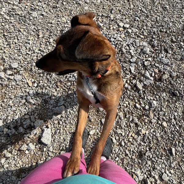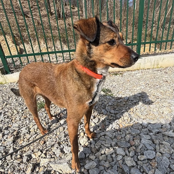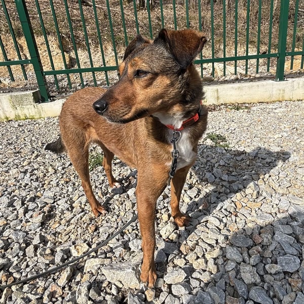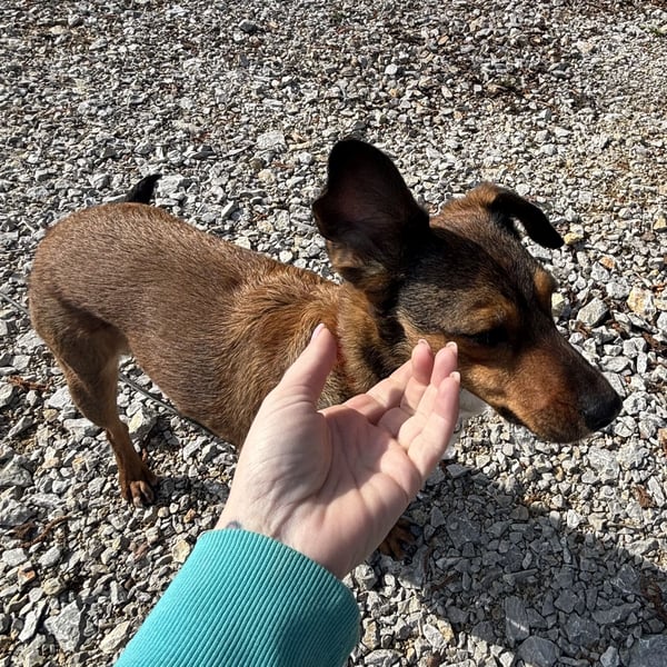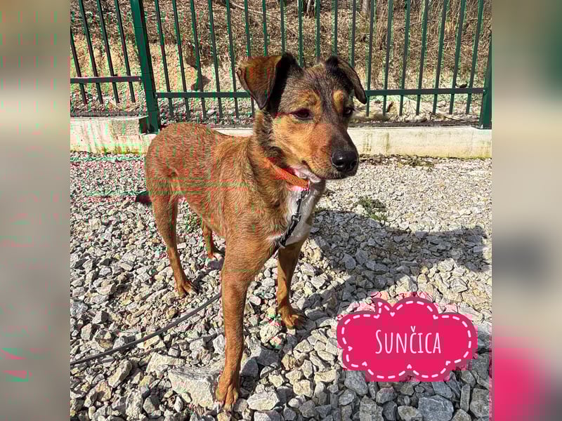 Sunčica (Pass-Name), jetzt liebevoll Rizza gennant, ist ca. 4 Jahre alt (16.02.2022), wiegt ca. 12kg und ist ca. 35cm groß. Vermutet wird ein Dackel Mischling.
