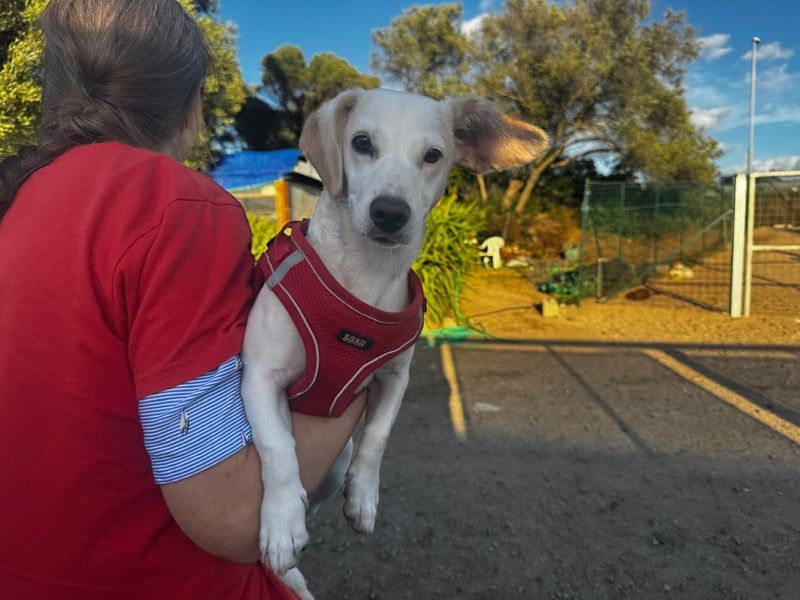 Anna-Maria ist ungefähr 35cm hoch, aber ihr Herz ist riesig. Geboren am 1. Juni 2025, so ist sie ein junges Hundemädchen, aufgeweckt, neugierig und voller Leben – auch wenn man ihr das im Tierheim kaum ansieht.