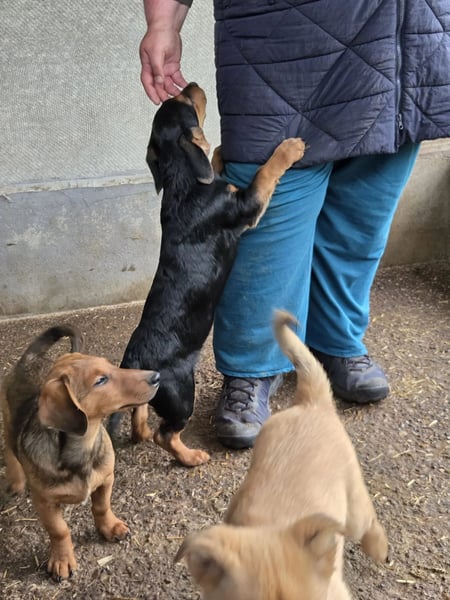 Eamon, Eros, Ezio und Ecco zeigen sich lieb, agil, neugierig und zutraulich. Aufgeschlossene Junghunde, die voller Lebensfreude stecken und die Welt entdecken möchten. Natürlich müssen sie noch einiges lernen und sind noch ganz grün hinter den Ohren. Alltagsroutinen, Grundregeln sowie das Hunde-ABC und all die Dinge, die ein junger Hund auf dem Weg ins Erwachsenwerden braucht. Mit Artgenossen sind sie verträglich und zeigen sich im Umgang sozial und unkompliziert.