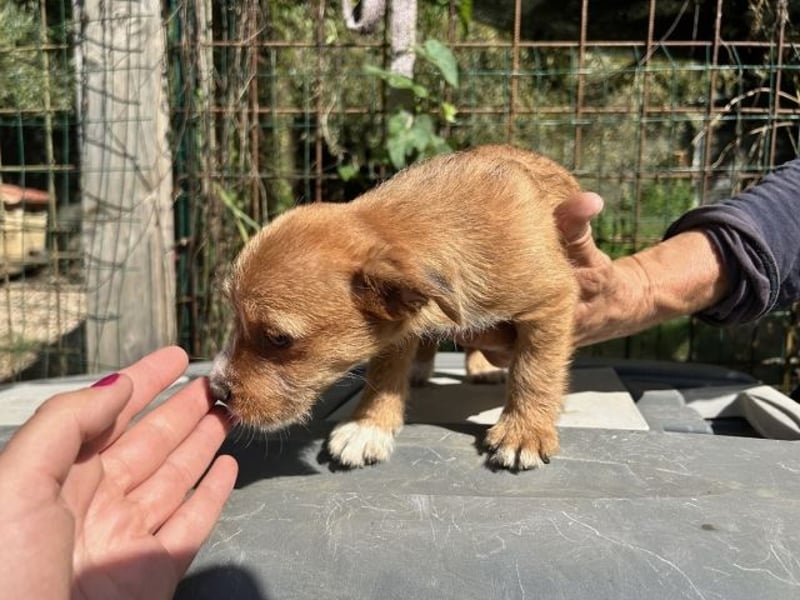 Elsa, Elias und Ella kamen unter einem alten, windschiefen Schuppen zur Welt. Ihre Mama war winzig, kaum größer als ein Kätzchen, und sie selbst sind es auch: zarte, kleine Welpen, die nie eine faire Chance hatten. Ihre Mutter wurde wohl tragend ausgesetzt und kämpfte mit all ihrer Kraft, um ihre Babys auf der Straße durchzubringen. Tag für Tag suchte sie nach Futter, versteckte die Kleinen vor Regen und Kälte und hielt sie warm mit ihrem dünnen Körper.