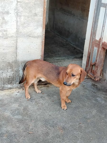 Rudi ist ein kleiner kurzbeiniger und noch junger Dackel Mischlingsrüde.