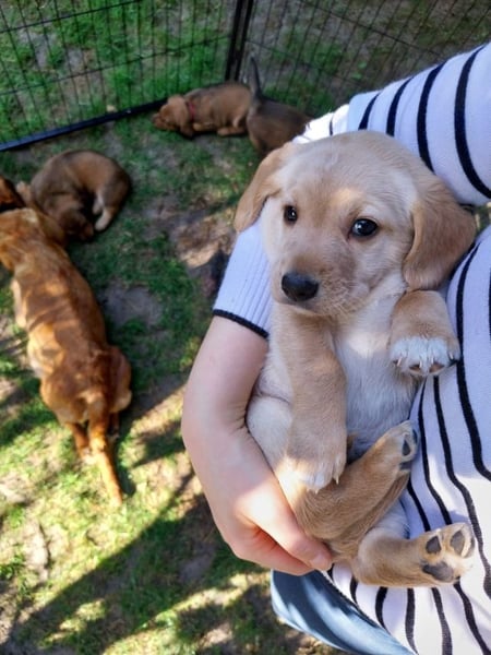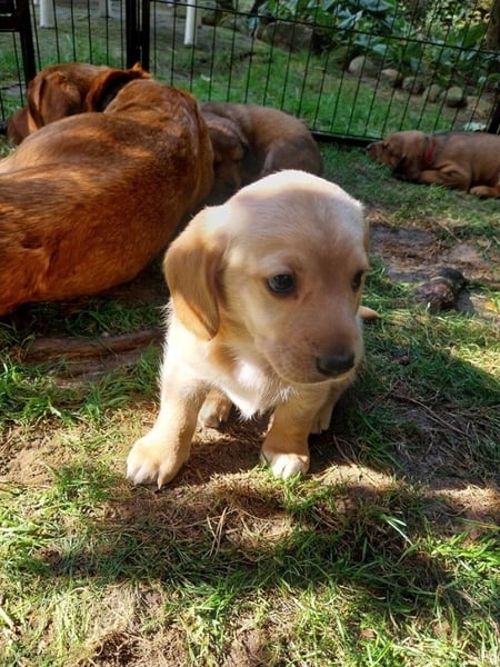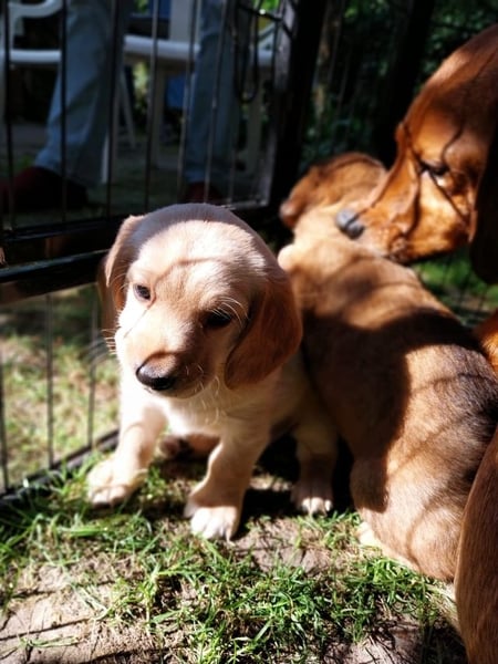 Die drei Erstgeborenen erinnern mit ihren längeren Beinchen, ihrem kompakteren Körperbau und glattem Fell an den Dackeltyp – vermutlich hat hier ein anderer Vater seine Spuren hinterlassen als bei den vier später Geborenen, die kürzere Beinchen, einen längeren Körper und längeres Fell haben. Jeder von ihnen ist einzigartig. Und doch sind sie eins: neugierig, verspielt, lebenshungrig.