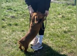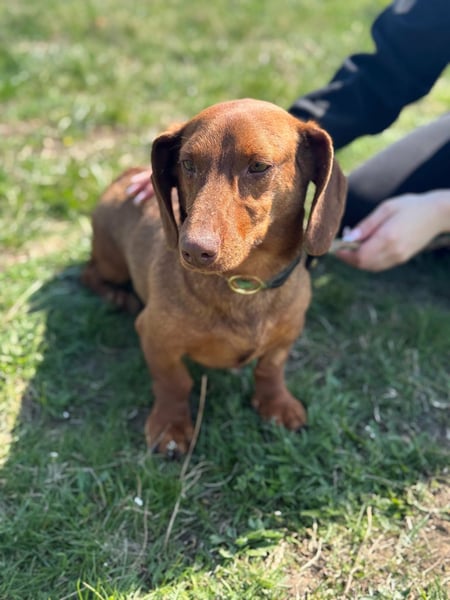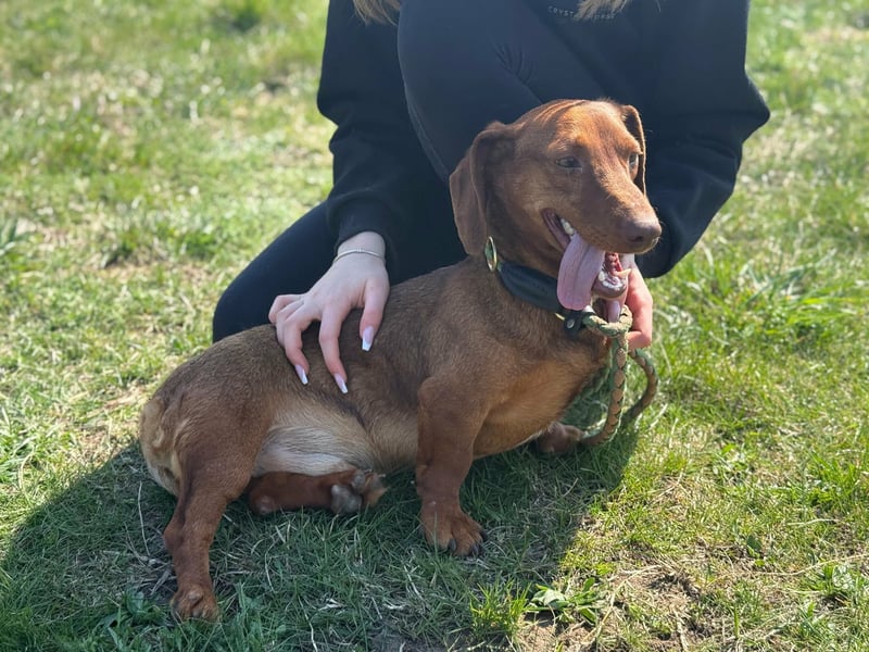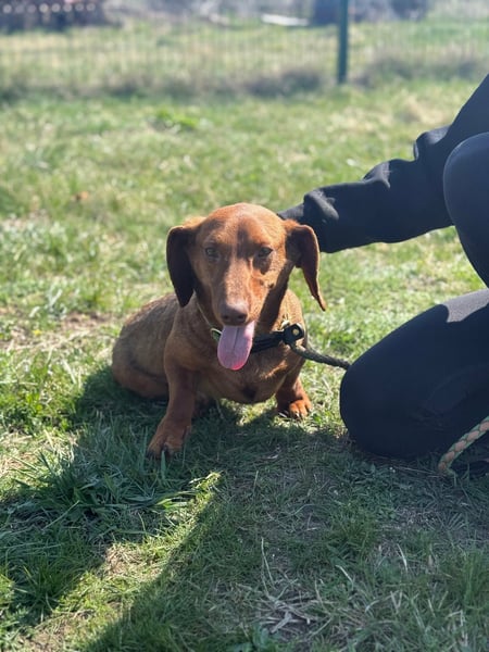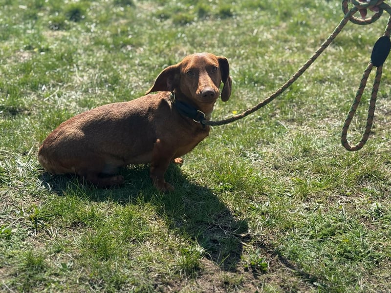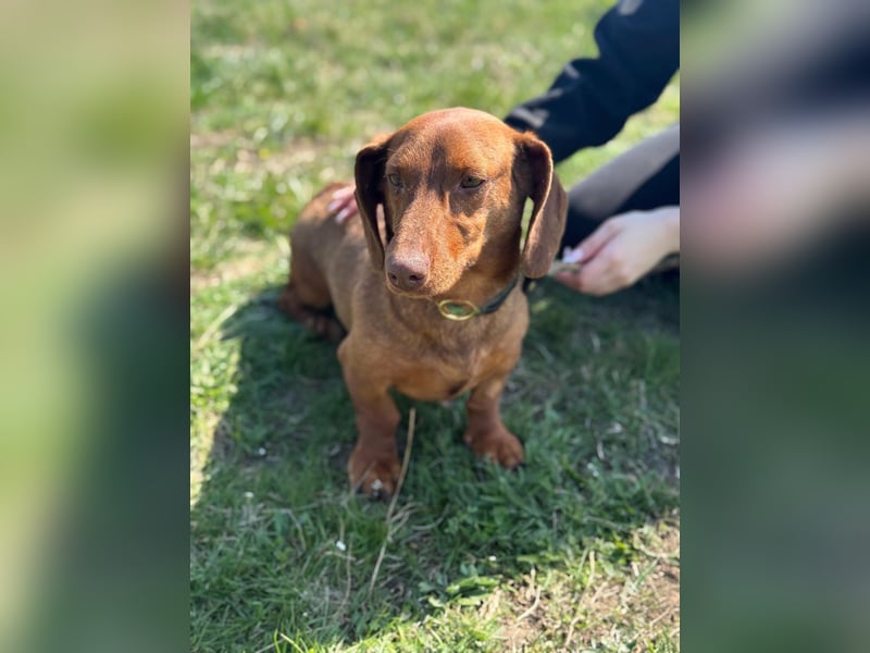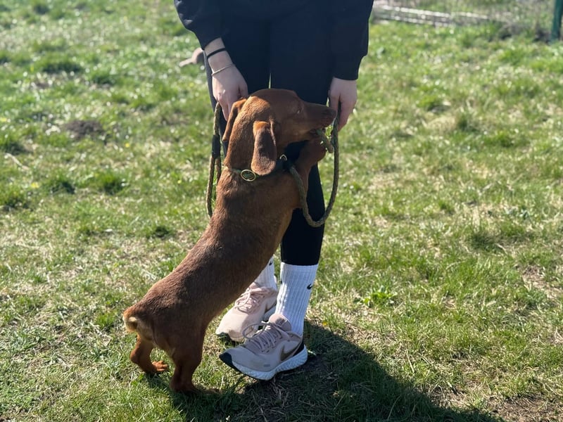 Mit anderen Hunden kommt er gut zurecht und bewegt sich sicher im Alltag. Neue Situationen meistert er neugierig und unerschrocken. Dabei weiß er genau, was er will, und zeigt das auch – typisch Dackel eben.