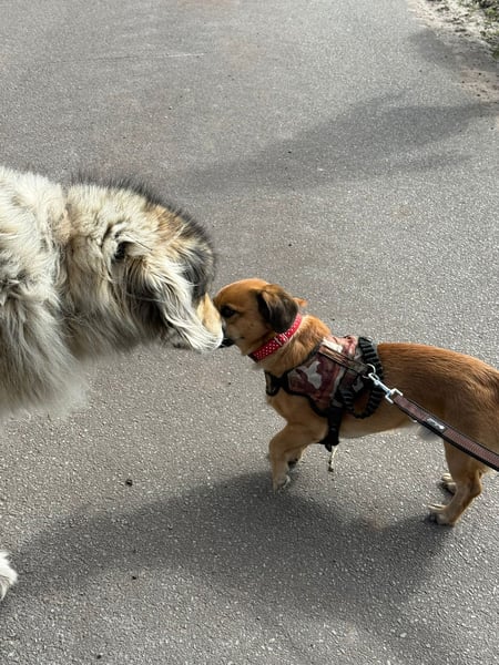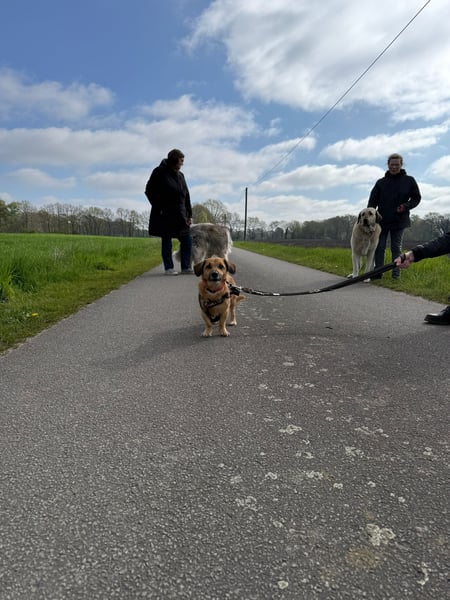 Heute war er mit einigen Gassigängern und Hunden des TSV Hortus Animalis e.V unterwegs und zeigt sich auf dem Spaziergang teilweise schon sehr entspannt und ließ sich sogar von einer ihm kaum bekannten Person an der Leine führen und zeigte sich auch hierbei sehr lernwillig und aufmerksam.