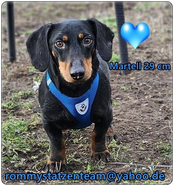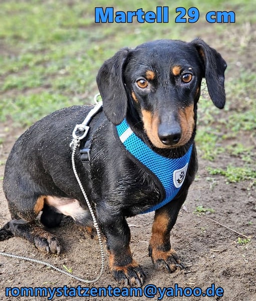 Martell, Rüde, Dackel Mischling, geboren ca. 09. Juni 2020 (von einem ungarischen Tierarzt geschätzt), reist kastriert, Schulterhöhe: ca. 29 cm und ca. z.Z. 5-6 Kilo (Hals: 28-32 cm, Brust: 47-52 cm), Vermittlung zu Katzen: ja, wenn diese das Leben mit Hunden kennen. Auf Wunsch wird auch extra nochmals getestet, nur eine Garantie gibt es nicht.