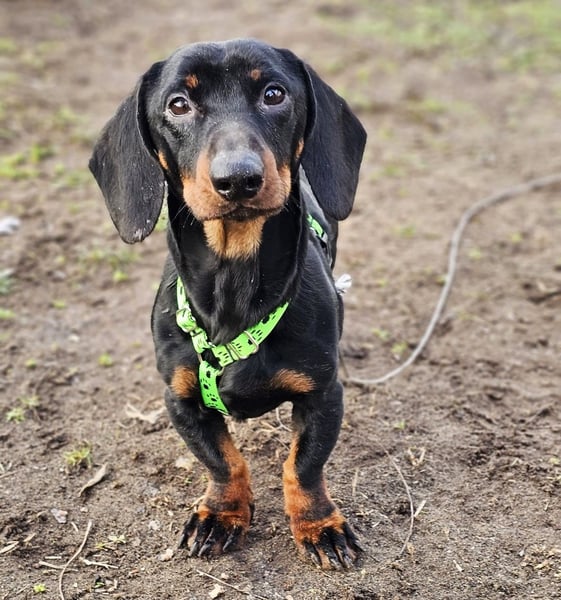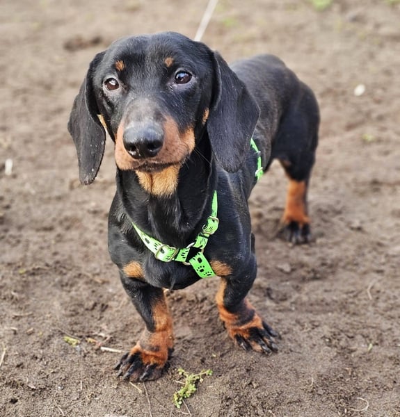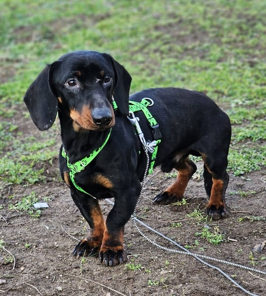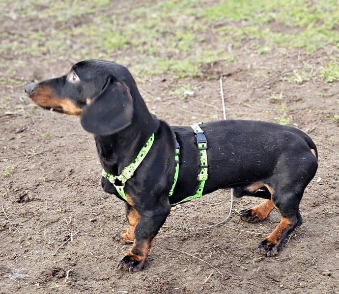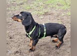 Bei Spaziergängen muss er IMMER gut gesichert werden, sonst wird er, typisch Dackel, öfters die Ohren auf Durchzug stellen und Spuren nachschnüffeln und weg wäre er.