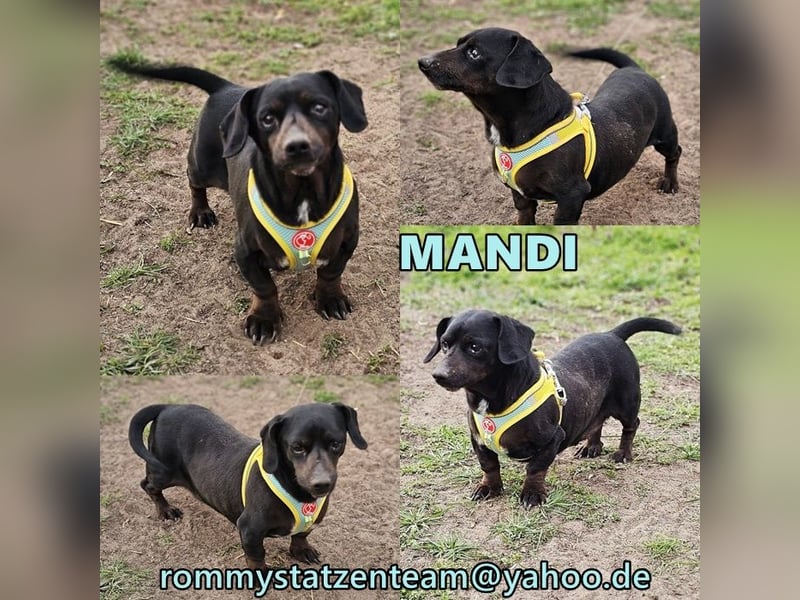 Mandi, Rüde, Dackel Mischling, geboren ca. 01. Mai 2015, reist kastriert, Schulterhöhe: ca. 28 cm und ca. z.Z. 9,5 Kilo (Hals: 32-36 cm, Brust: 55-59 cm), Vermittlung zu Katzen: ja, wenn diese das Leben mit Hunden kennen. Auf Wunsch wird auch extra nochmals getestet, nur eine Garantie gibt es nicht.