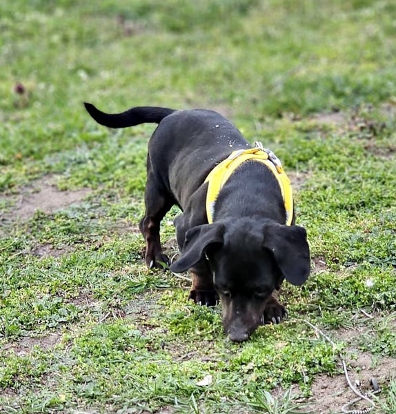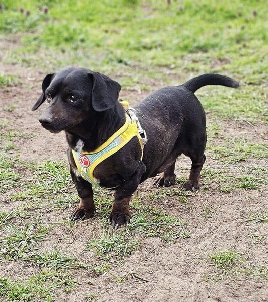 Mandi ist ein Dackel mit dem Herz aus Gold und im Moment leider sehr übergewichtig.