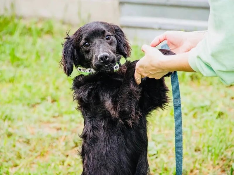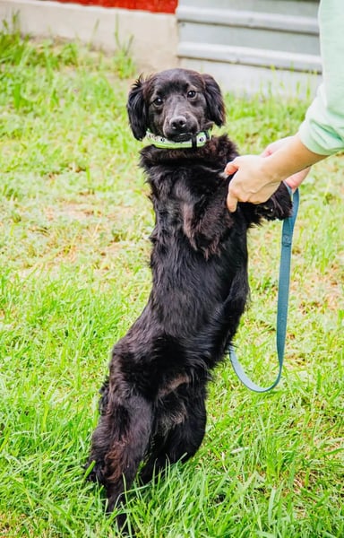 Mandula ist eine noch sehr junge Dackel-Mischlingshündin mit einem besonders sanften Wesen. Gemeinsam mit ihren Geschwistern wurde sie als Welpe gefunden und in Sicherheit gebracht. Ihre Vergangenheit hat sie jedoch vorsichtig und zurückhaltend werden lassen – Menschen begegnet sie zunächst ängstlich, aber stets freundlich und ohne jede Spur von Aggression.