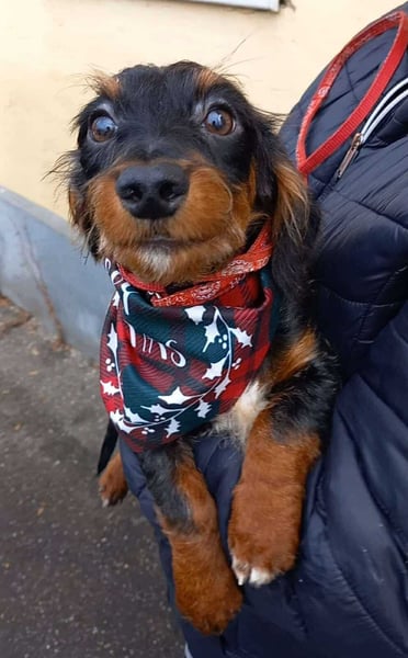 Da es sich hier um Mischlinge und Fundtiere handelt, können wir eine Endgröße von ca. 30-30cm und Gewicht von 6-8 kg nur schätzen. Dackel sollten aufgrund des längeren Rückens und der krummen Beine keine Treppen laufen, daher priorisieren wir ein ebenerdiges Zuhause.