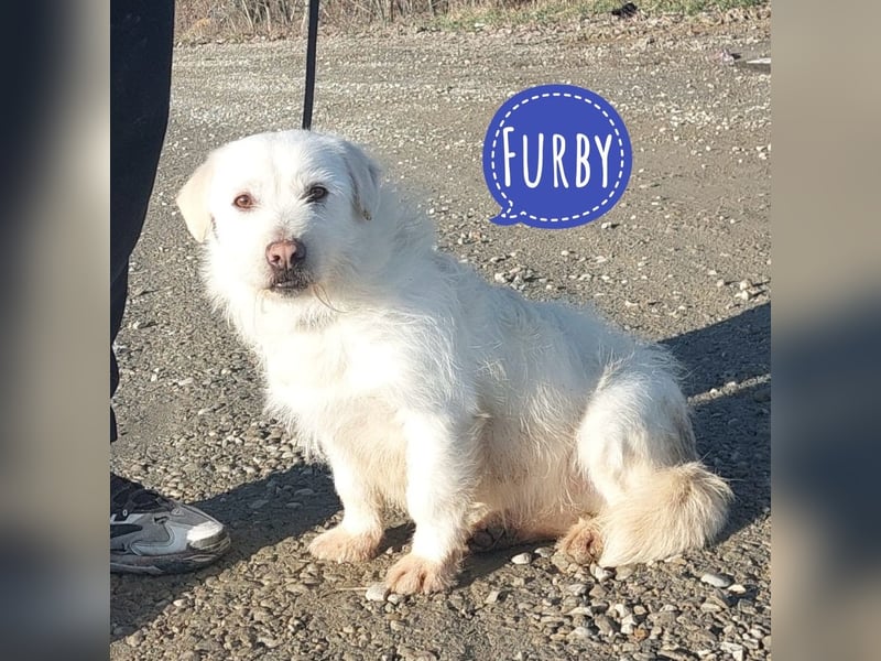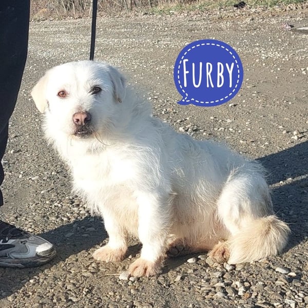 Furby ist ein Rüde, geboren am 30.03.2021., wiegt 13 kg und ist 38 cm groß. Vermutet wird ein Queerbeet Mischling kleinerer Hunderassen.