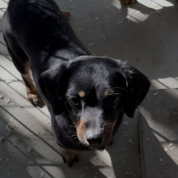 Sie ist ruhig in ihrem Zwinger und mit anderen Hunden gut verträglich.