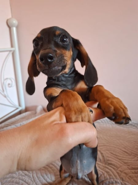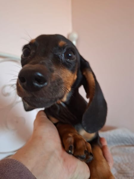 Amador ist ein ganz zauberhafter Dackel-Mix Welpe. Mit seinen langen Ohren ist er einfach nur zum Verlieben. Aus seinem Wurf wirkt er wie der Ruhigste der Rasselbande. Aber lassen Sie sich davon nicht täuschen. Wenn einer der Geschwister zum Abenteuer aufruft, ist auch er voll bei der Sache und erkundet, spielt und schnüffelt, was das Zeug hält. Wenn er einmal Pause macht, dann liegt er am liebsten auf dem Schoß seiner Pflegemama und verteilt sehr großzügig liebevolle, feuchte Küsschen. Man kann ihm einfach nicht widerstehen.