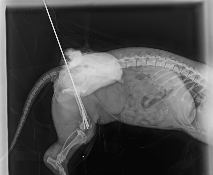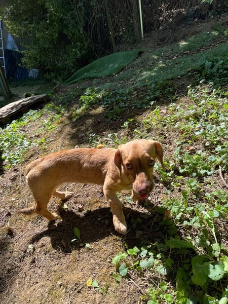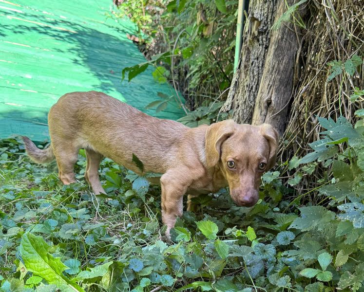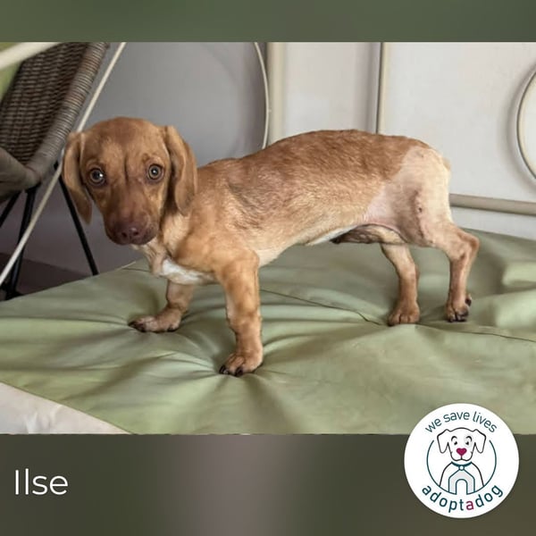 Ilse hatte einmal eine Besitzerin, doch ihr Leben war nicht leicht. Als sie aus dem Hof entkam, wurde sie von einem Auto angefahren und brach sich ein Bein. Zum Glück konnte sie operiert werden – die OP war erfolgreich, und Ilse läuft und rennt wieder ganz normal! Die Metallstifte werden in Kürze entfernt.