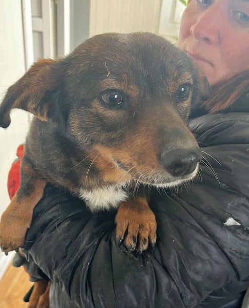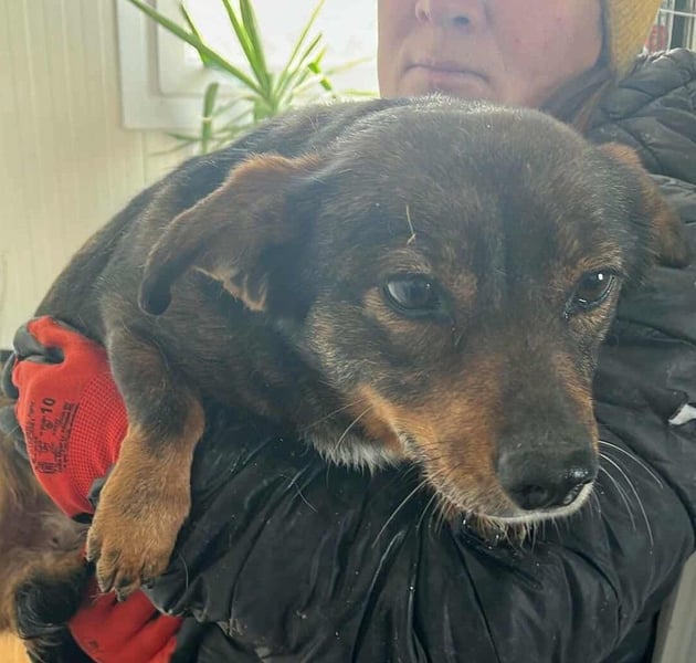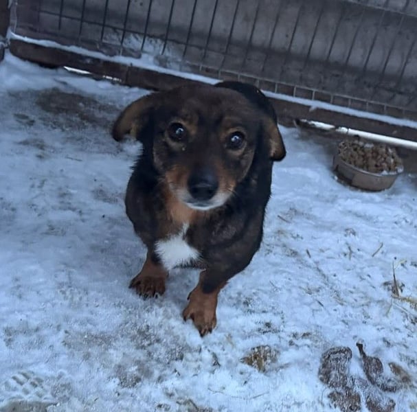 Bei dem Besuch unserer Kolleginnen im Februar 2026 haben sie Juri kennengelernt. Ganz jämmerlich saß sie in ihrem Zwinger und winselte fürchterlich. Man spürte sofort, wie sehr ihr die Situation zusetzte. Als sie den Zwinger betraten, drückte sie sich eng an sie, suchte Schutz und Nähe und war einfach nur erleichtert, dass endlich jemand bei ihr war. Dieser Moment ging allen sehr nahe.