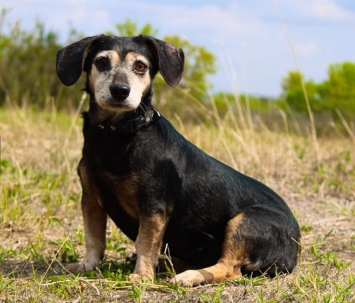 Sie ist wahrscheinlich ein Dackel/ Beagle Mischling. Sie streunte wochenlang auf der Straße rum, bis sich endlich tierliebe Menschen ihrer annahmen und sie ins Tierheim brachten.