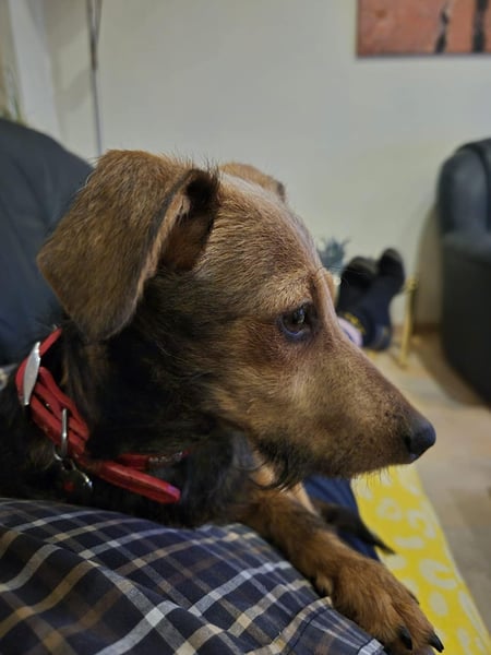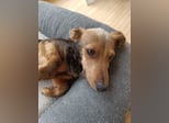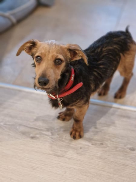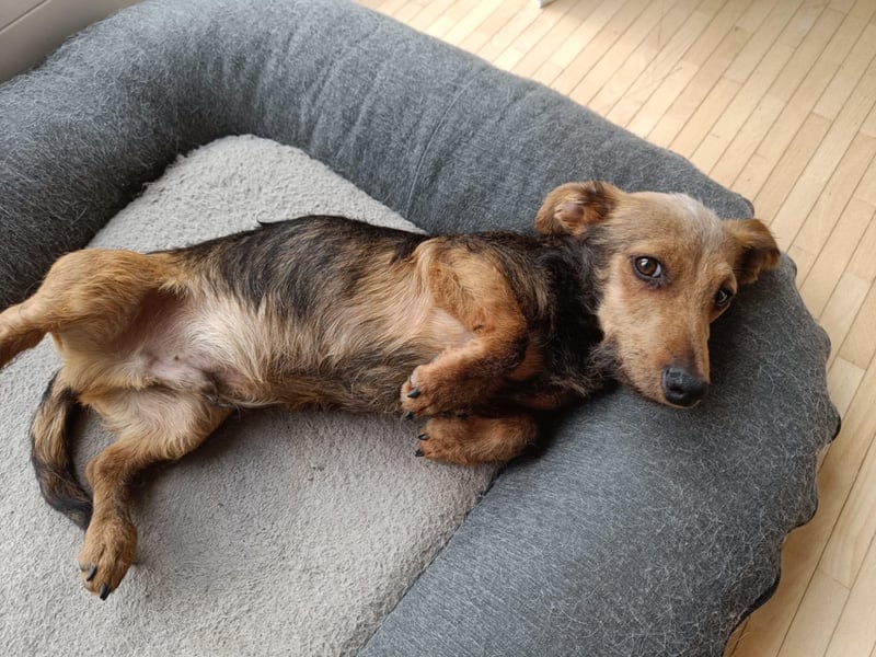 Soma, ein zarter Dackelmix von nur 22 cm und 4,3 kg, wartet darauf, endlich sein eigenes Herz-Zuhause zu finden.
