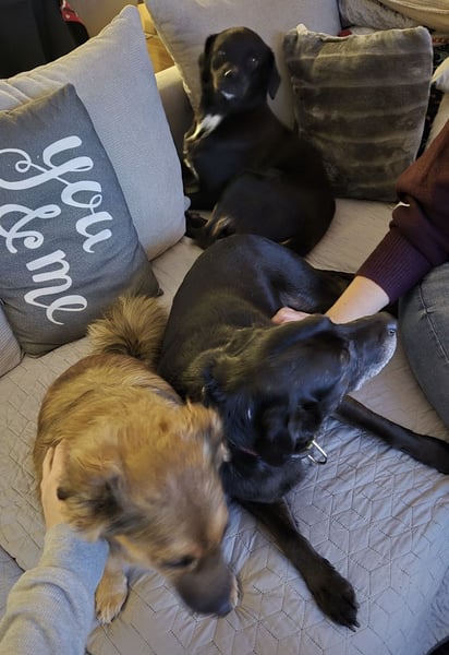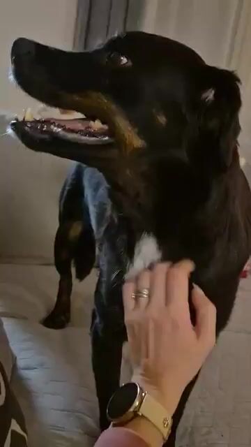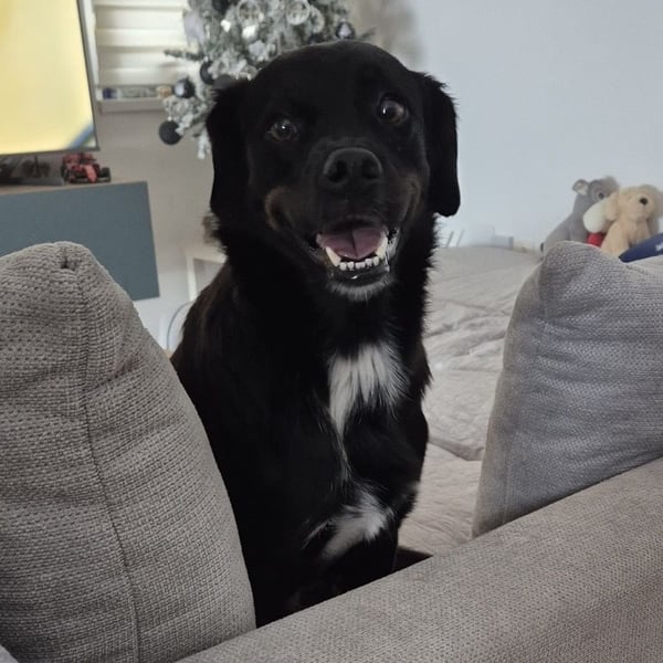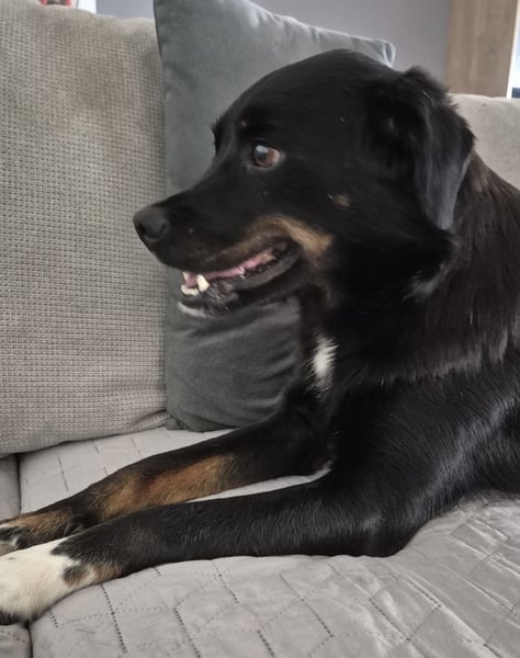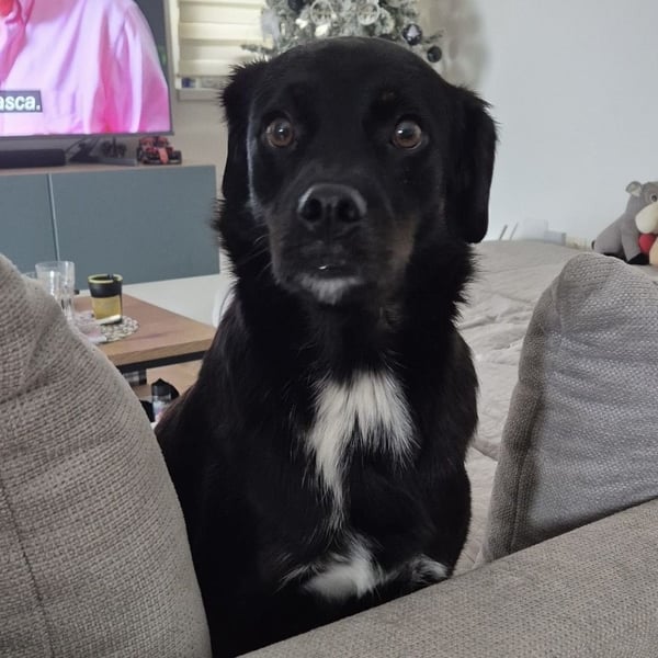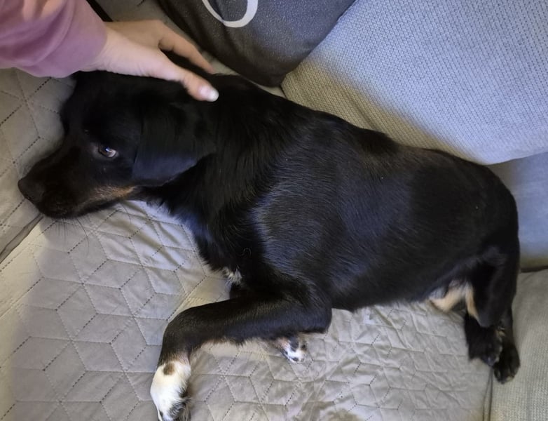 Er versteckt sich immer noch gerne im Badezimmer, wie als es ein sicherer Ort wäre, kommt aber auch auf die Couch wenn nur Pflegeeltern da sind. Dann sucht er sogar nach Zuwendung und genießt vorsichtig das Kuscheln.