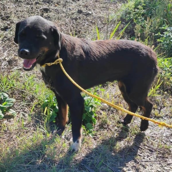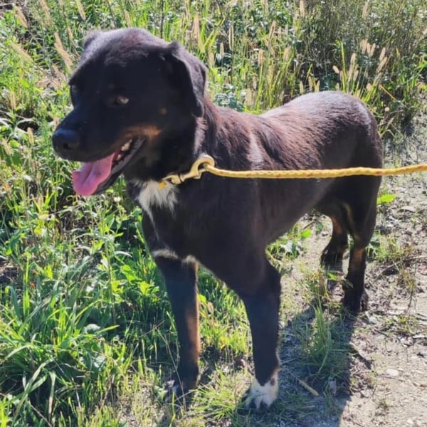 Er taut langsam auf, läuft mittlerweile sogar an der Leine. Er ist immer noch situationsbedingt sehr ängstlich, doch er wird immer mutiger.