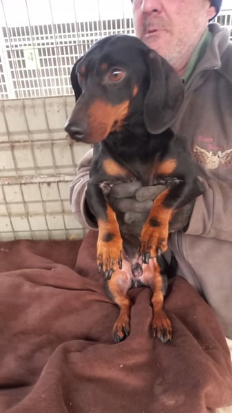 ich bin ein hübscher Kurzhaardackel, in der tollen Farbe Schwarz / Braun.