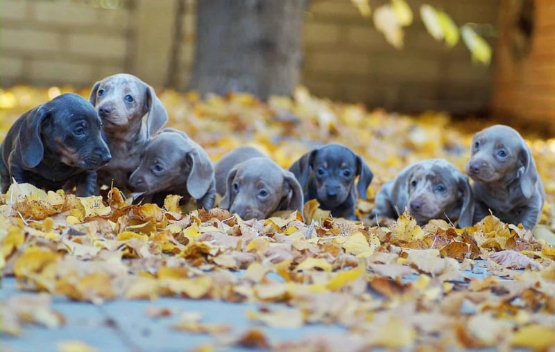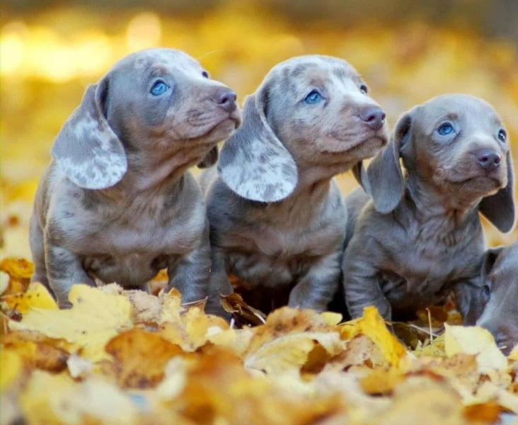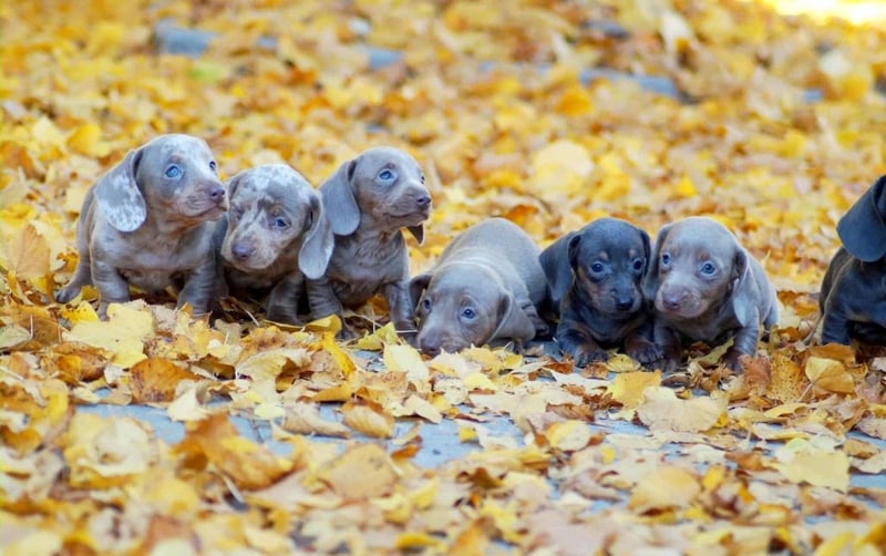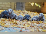 Die Welpen sind eine echte Besonderheit und haben die seltenen Sonderfarben: Blau, Blue-Merle (Tiger) und Isabella-Merle. Wie auf den aktuellen Herbstbildern zu sehen ist, wachsen die Kleinen naturnah, gesund und bestens sozialisiert auf.