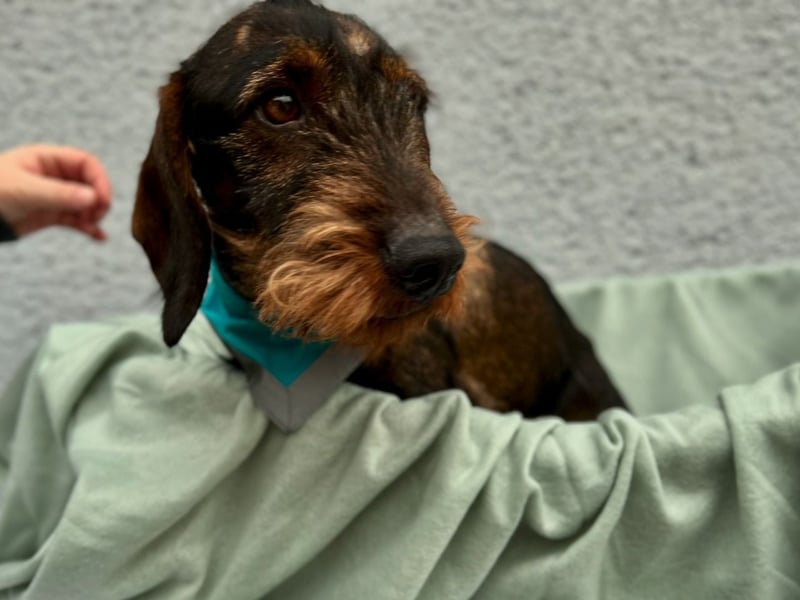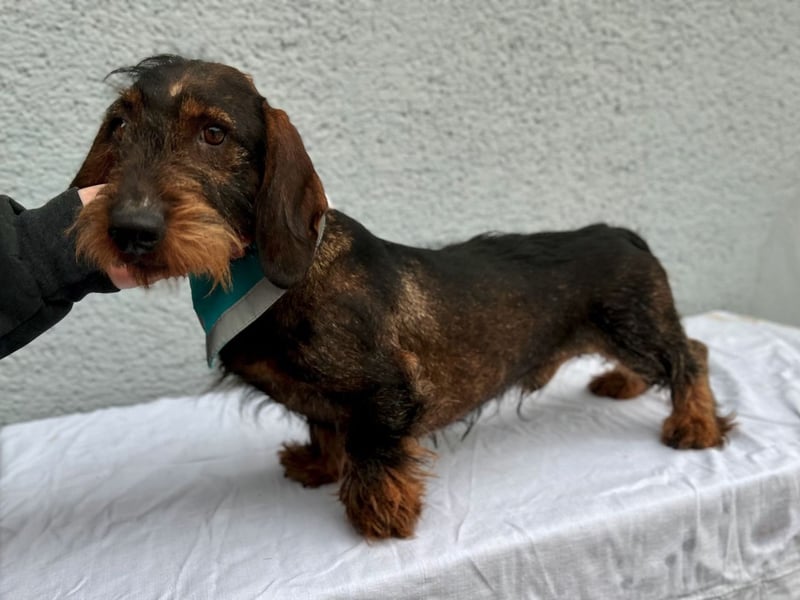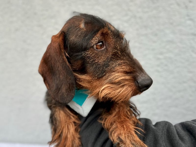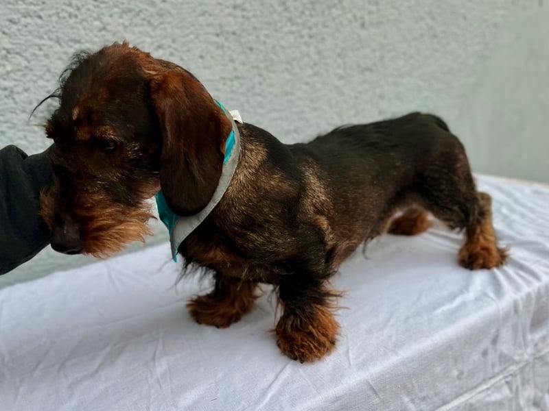 Ich bin ein Rauhaardackel und ich bin saufarben.