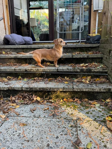 Kira ist eine etwa fünfjährige, kastrierte Dackel-Mix-Hündin (ca. 7,5 kg / 30 cm), die dringend ein ruhiges und liebevolles Zuhause sucht. Sie ist ein typischer kleiner Charakterhund mit viel Herz und einer gesunden Portion Dackelsturheit. Bei vertrauten Menschen ist sie sehr verschmust, sucht gerne Körperkontakt, ist loyal, anhänglich und sehr liebevoll. Kira liebt feste Strukturen, klare Abläufe und ruhige Menschen. Eine hektische Umgebung oder viel Besuch überfordern sie. Draußen ist sie hingegen entspannt, neugierig und freundlich. Aktuell lebt sie problemlos mit Kindern und Katzen zusammen.
