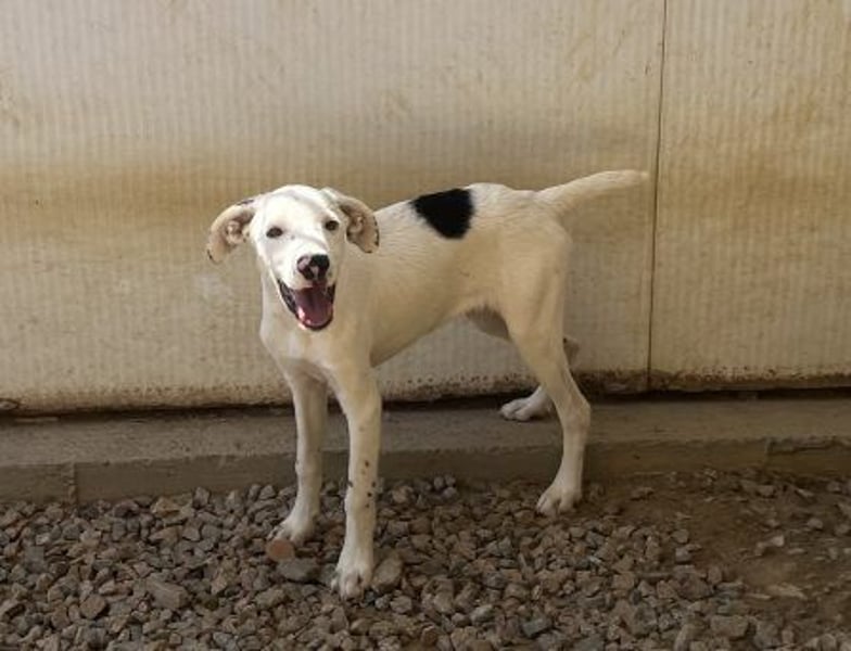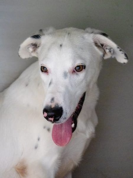 Und wenn man ihn ansieht, erkennt man sofort, dass Markus etwas ganz Besonderes ist: Seine Zeichnung erinnert an einen Dalmatiner – weißes Fell, durchsetzt mit dunklen Tupfen, die ihn zu einem echten Hingucker machen. Seine Öhrchen stehen lustig in die Welt, wenn er lauscht. Ein wunderschöner, einzigartiger Hund, der trotz seiner Unsicherheit eine leise Eleganz ausstrahlt.