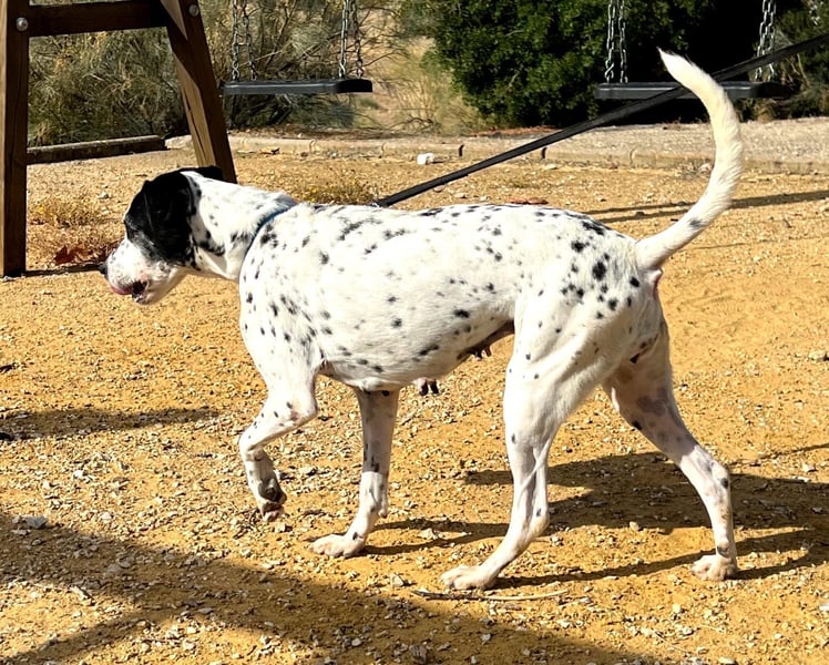 Unser hübsches Notfellchen Bella, eine etwa 11-jährige Dalmatiner-Mischlingshündin, hat schon viel erlebt – zu viel. Sie wurde aus einem sogenannten Haus gerettet, wo sie unter erbärmlichen, unhygienischen Bedingungen leben musste.