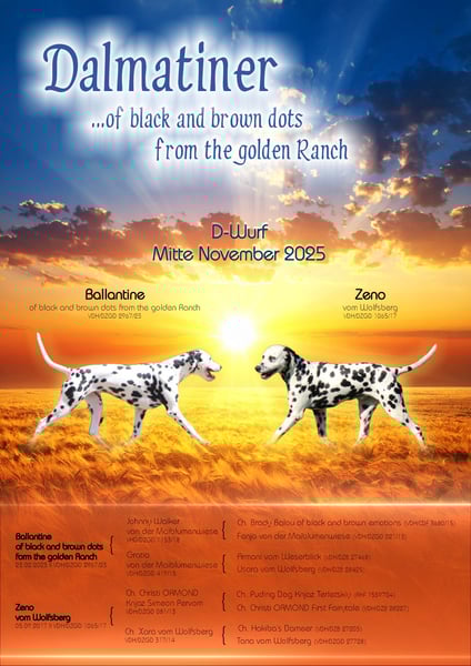 Aktuelle Bilder könnt ihr bei Facebook unter .... Dalmatiner... of black and brown dots from the golden Ranch finden.