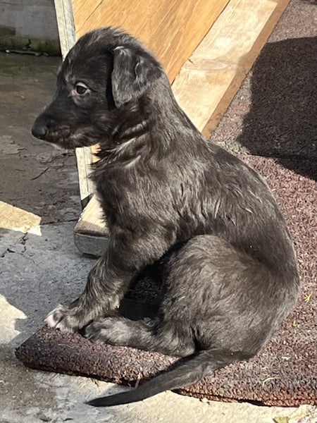 Wir wünschen uns ein liebevolles Zuhause mit einem Deerhound würdigen Schlafplatz ;-) ab 18.10.