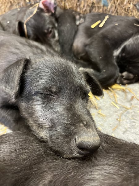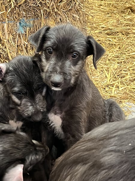 Unsere kleine Familienzucht hat Deerhound Nachwuchs - jetzt 8 Wochen alt und freut sich über Besucher.
