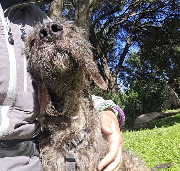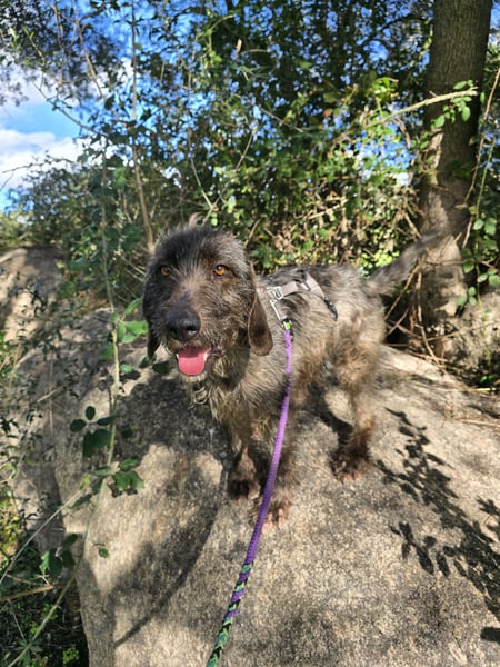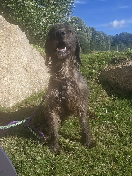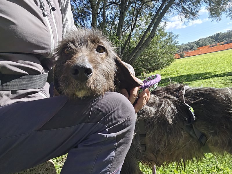 Sie liebt alle Menschen, geht gut an der Leine, legt sich ab, wenn man stehen bleibt und sie zeigt sich äußerst dankbar.